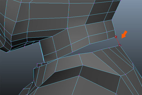 Press ‘F9’ to jump into Vertex selection mode and then arrange the vertices to make a proper mesh flow. After that, start merging the corresponding vertices together as indicated in the image.
