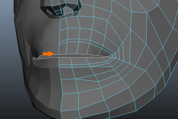 Now press ‘F10’ to jump into edge selection mode and then select one side edge and Extrude it 5 times to form the shape of the upper lip.