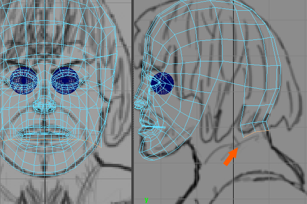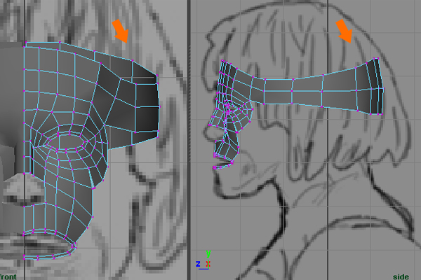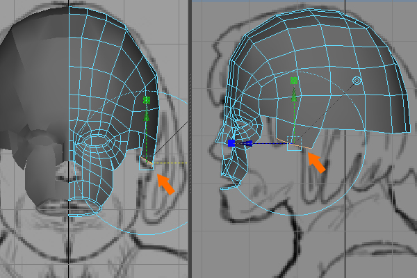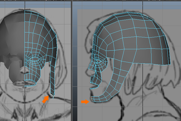 Also don’t forget to arrange the mesh flow in the side view according to the image reference.