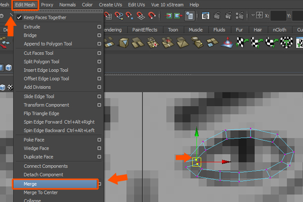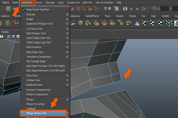 Now, we have to merge the separate vertices together. So go to the ‘Edit Mesh’ menu and then select the ‘Merge Vertex Tool’.