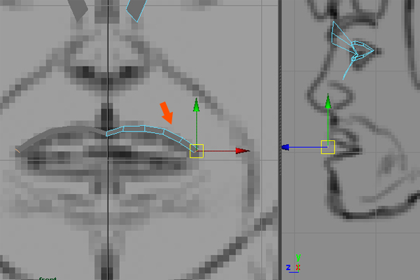 Press ‘F9’ to jump into Vertex selection mode and arrange the vertices both in the Front and side views according to the reference images.