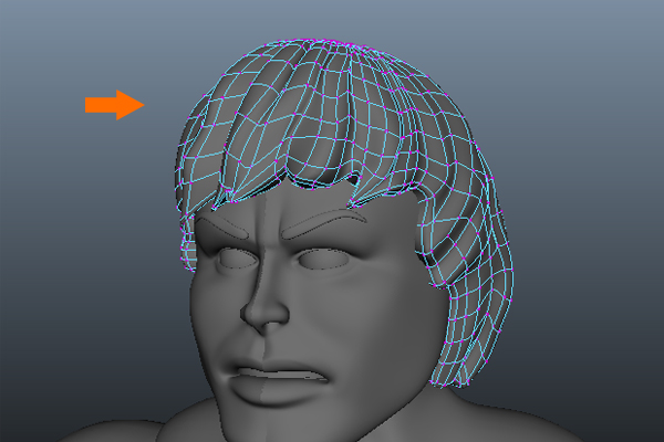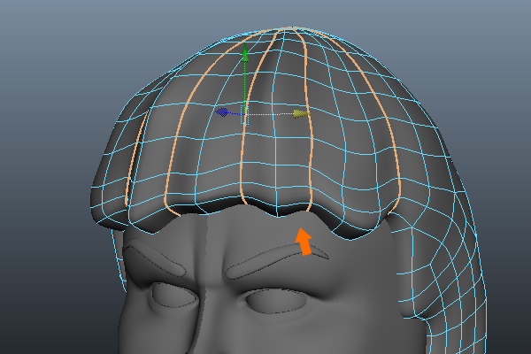 Following the same process, Extrude the columns of faces one by one and adjust the vertices to add hair wrinkles.