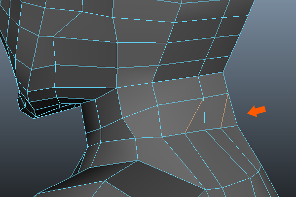 With the ‘Append to Polygon Tool’ selected, first click on the chin edge and then click on the first neck edge and press ‘Enter’, to apply the ‘Append to Polygon Tool’ command.
