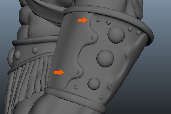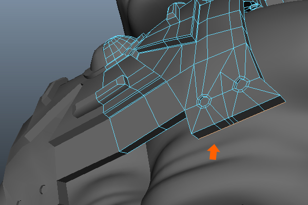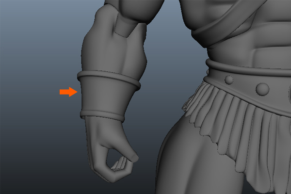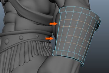 Keep Extruding around the arm to complete the armor's belt.