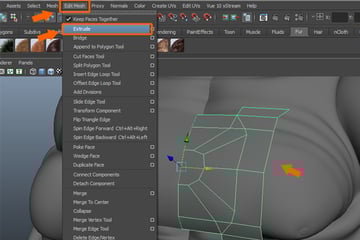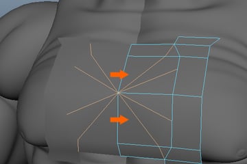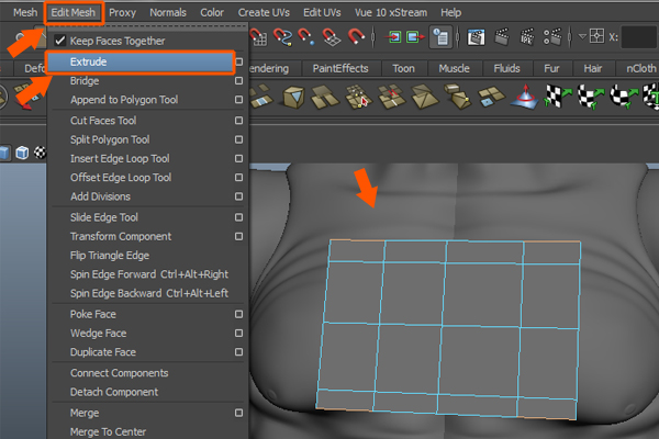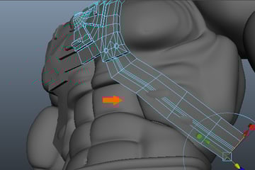 Following the same process as before, Extrude the upper edges five times over the shoulder.