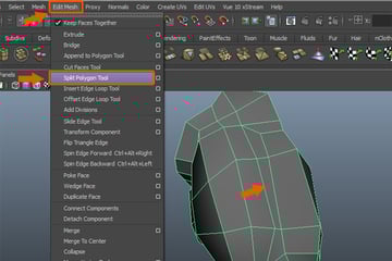 Now, we’ll insert several edges manually. So, go to the Edit Mesh menu and select the Split Polygon Tool. Please note, the Split Polygon Tool has been replaced with the Interactive Split Tool from Maya 2012 onwards.