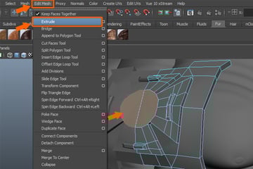 Now, select the circular face in the center, and then go to the Edit Mesh menu and choose the Extrude command.