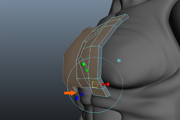 To add some thickness to the chest armor. First Select it, and then go to the Edit Mesh menu and click on the Extrude command.