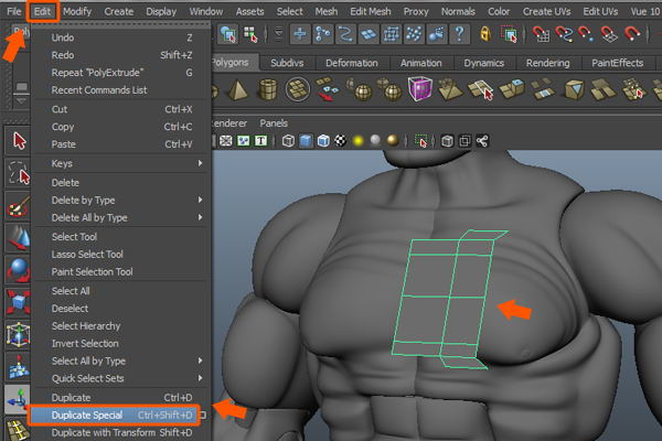Now re-select the Plane and go to the Edit menu and click on the Duplicate Special command.
