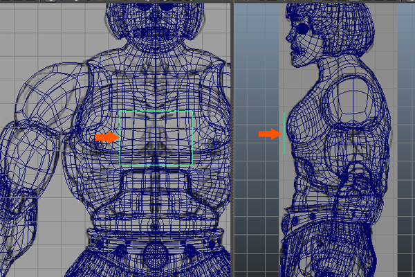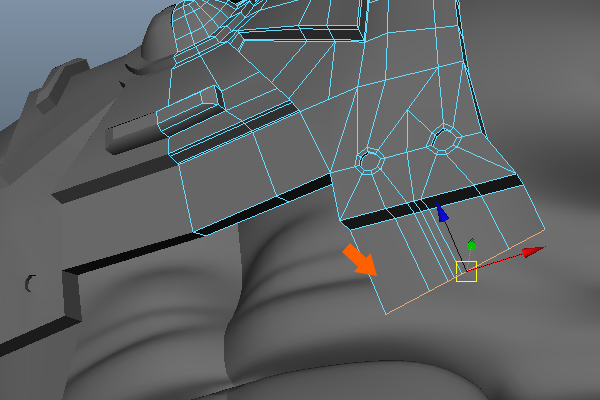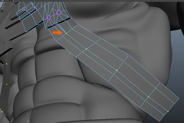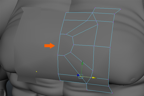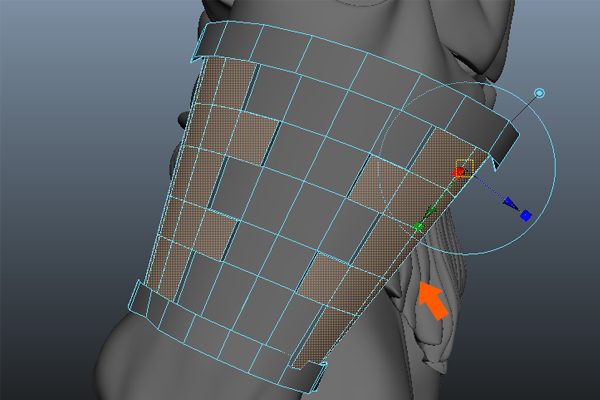 Now, press F9 to jump into Vertex Selection mode, and then select the lower vertices and adjust them according to the flow of the chest armor belt.