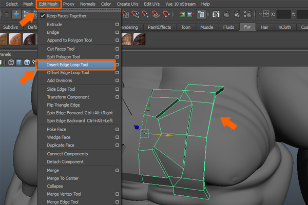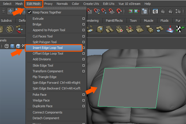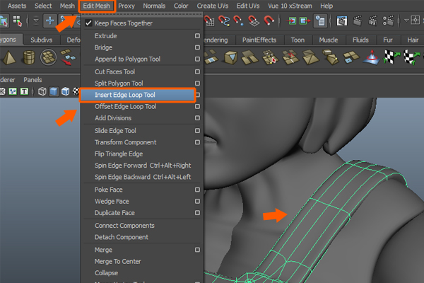 We need to subdivide the faces to add more detail. So, go to Edit Mesh menu and select the Insert Edge Loop Tool.