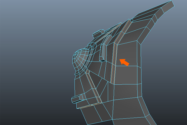 Following the same process, keep Extruding continuously four times. And then arrange the new edge loops so they are offset from the body.