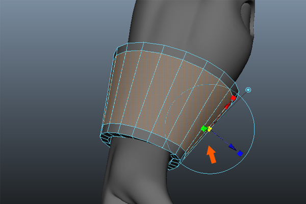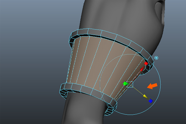 Now, to make the wrist armor a different shape. Press F9 to jump into Vertex Selection mode, then select the upper vertices and stretch them up a bit.