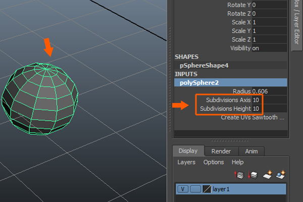 Next, create a polygon Sphere primitive with the Subdivisions Axis and Subdivisions Height set to 10.