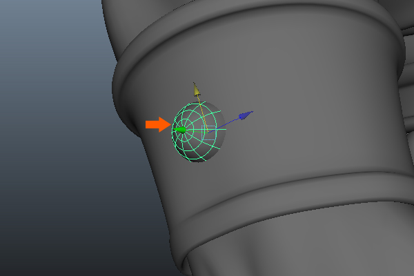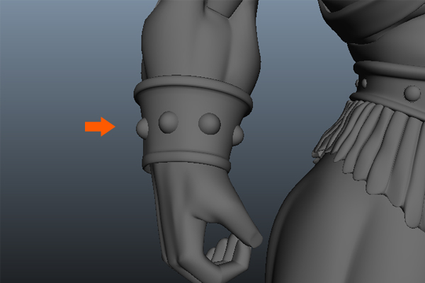 Now, Move and place this semi-sphere poly mesh on the wrist band, as shown.