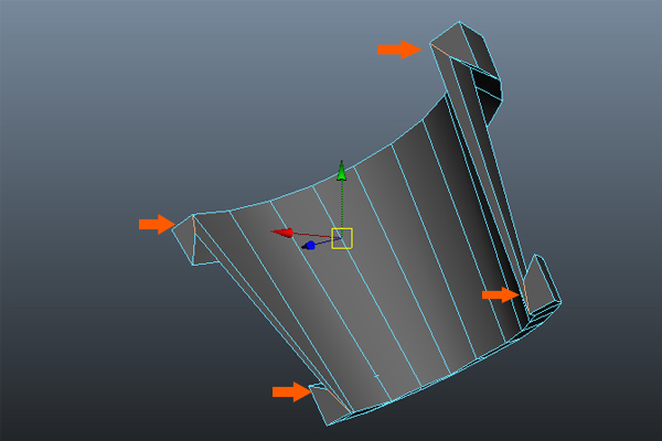 After filling the holes, Split each corner as shown.