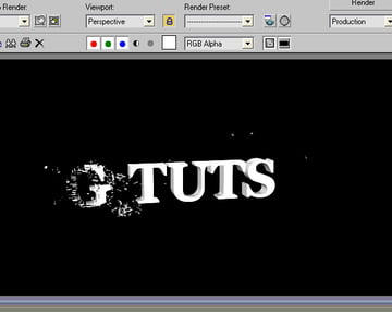 Press “F9” to render and you will see a beautiful scene of the text "CG TUTS" turning into broken random shaped particles.