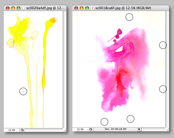 Start off by cleaning up your watercolor scans using the Clone Stamp Tool (S) and also carry out any Levels adjustments (Command + L) as required – alternatively use the watercolor scans supplied in the "source" folder.