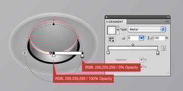 Fill the circle with a radial gradient with the following values.