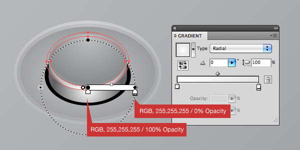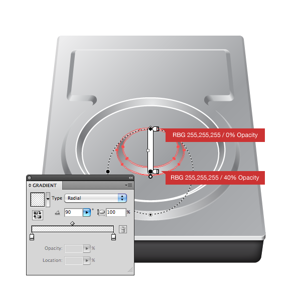 Resize down and place it on the bottom right corner of the top plate. Fill the ellipse with a radial gradient.