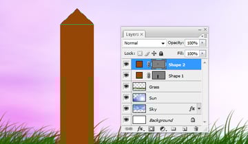 The next step is to make the fence. Using the Shape Tool, draw a rectangle. This will be the base of the fence. Now draw a triangle on top of it to make it look more like a fence.