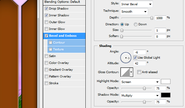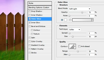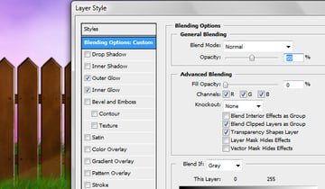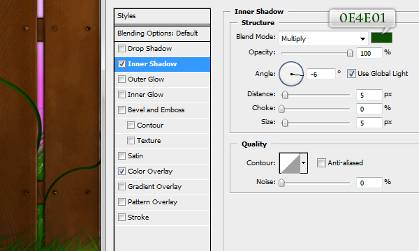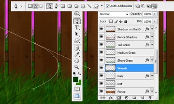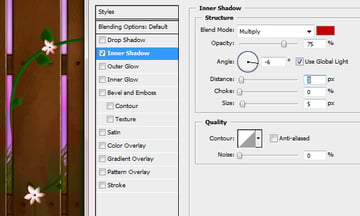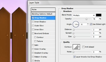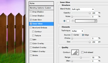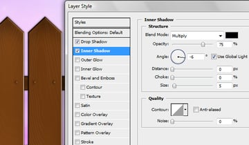 To make the vines look like they are growing around the fence erase some parts of them. Finally, change the layer styles of the vines to match the ones below.