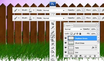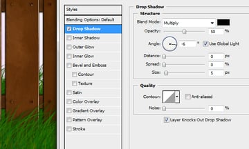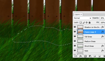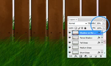 To add still more dimension to the grass layers, on both the "Short Grass" and "Tall Grass" layers, go to Layer Style and add a Drop Shadow. Do not add a Drop Shadow on the "Medium Grass" layer because the image might then look too choppy.