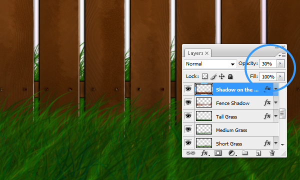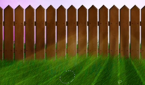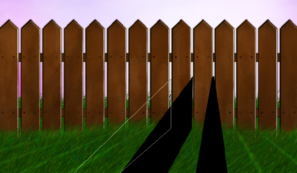 Now the shadows might be overlapping in some places. I've used both the Eraser Tool and the Smudge Tool to fix that. You also may want to erase part of the shadow that is on the fence itself.