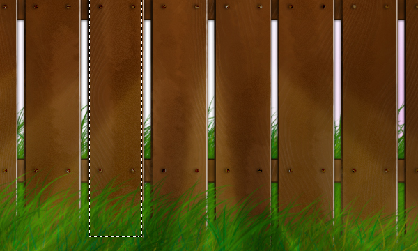 Once you’ve placed them exactly where you want the nails to be, merge the layers, and duplicate until you have enough nails for the whole fence. Put them all where you want them to be and merge them into one layer using the Select Similar Layers technique that we have used earlier on.