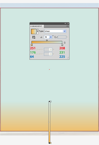 Place this fresh shape below the duplication of "Roof.Part.1a" and "Roof.Part1.Margin." Now select these three shapes and click on the Minus Front button from the Pathfinder pallet. Name the resulting shape "Roof.Part2" and fill it with R=243, G=136, and B=54. Duplicate "Roof.Part2" once and fill it with the gradient from image 7. Name this shape "Roof.Part2.Gradient."