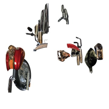 Right. The next thing we will need is the pieces of motorcycle to use in our creation. Start by cutting out a few likely candidates. We will also go through some of the techniques necessary to lift the bits and pieces we will need for our god.