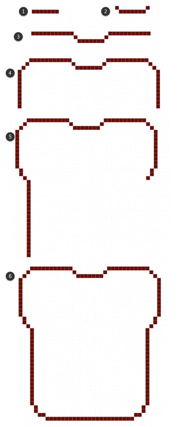 - 11 pixels, on either side, form the rest of the top edge. Round out the corners with two diagonal pixels on each side. Ten down on each side before we get into the base of the bread shape.