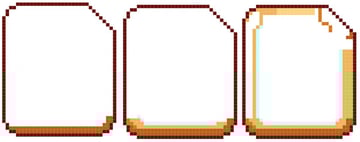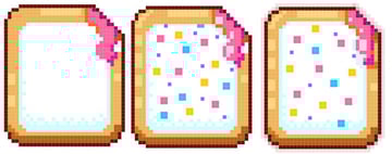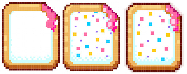 The toaster pastry design is fairly simple as well: a rounded rectangle (note the two down, two across corners) with the upper right corner made up of six diagonal pixels that will form a "bite" out of the pastry.