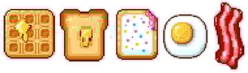 Expand on your breakfast icons with fruit, coffee, juice, and more. This set is skewed towards American breakfast foods, so if you're outside of the US, or your life has been influenced by other cultures (whether your own or others), I challenge you to make little icons of those delicious dishes. Take it all a step further and make icons of every food item in your kitchen. Happy pixeling, readers!