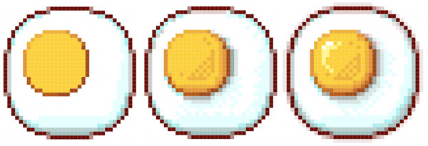 The egg icon shape is a compromise between a proper fried egg (which would be all over the place) and a perfect circle (which seems too artificial, even for these little pixel designs). The pixel count is as follows: