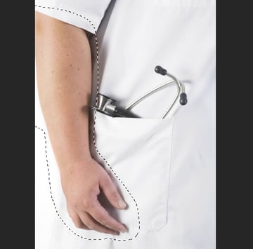 Now use a layer-based selection from "Female mannequin arms/legs" to create a mask, then modify as shown – you'll also need to fill a selection with black from the "Female mannequin torso" and manually paint over the supporting strut as circled.