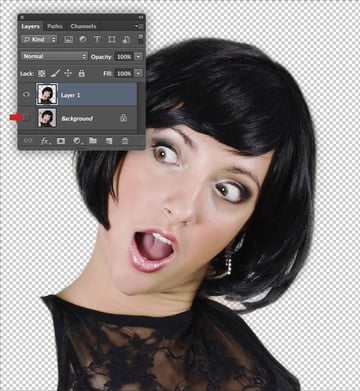 Cmd/Ctrl-click the "Alpha 1" channel thumbnail to load a selection. Target the top RGB composite channel and switch back to the Layers tab. Now press Cmd/Ctrl + J to copy the selection to a new layer and disable the visibility of the "Background" layer.