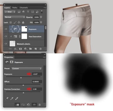 Add a mask, then use an assortment of different sized soft-edged brushes to carefully blend the neck into the figure. My mask is again shown at the bottom of the screenshot.