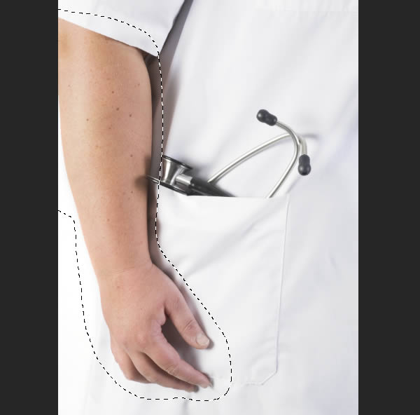 Next, we'll add some textures to the mannequin's arms. Open the woman's arm photo and create a rough selection as indicated and Copy to the Clipboard.