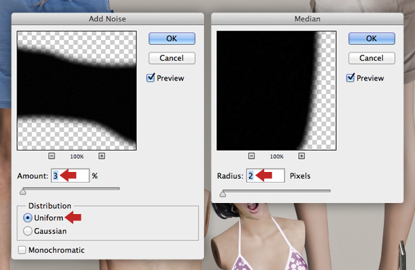 Target the the "Grey fill" layer again and open Median from the same filter menu and apply 2px. Now repeat the same filter on all remaining layers within the "BACKGROUND" folder.