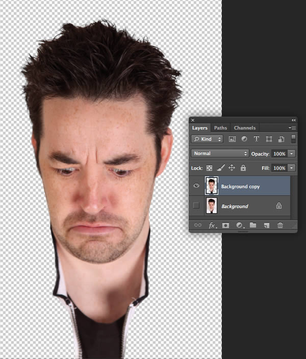 Once your happy with the size and position, set the Opacity back to 100%. If you notice any white edge halos picked up from the initial head selection, go to Layer > Matting > Defringe and enter 2-3px in the following window.