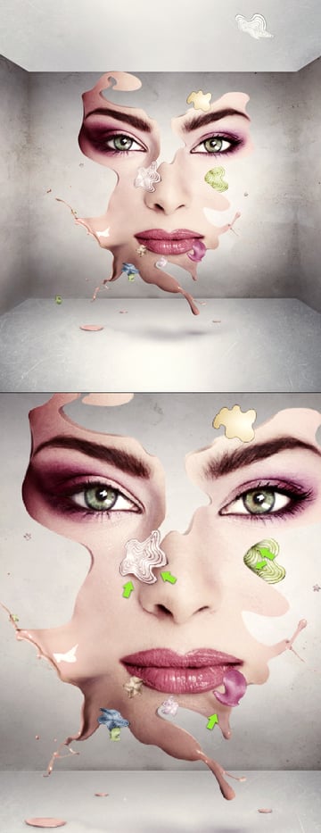 This may look a little confusing. Let's review what this does? Well, basically we're revealing the skin from the copied face. And we're doing this on the splash to make it look more skin textured. It's a tiny difference, but believe me, if you zoom in, you will see the difference. The splash will look like real skin.