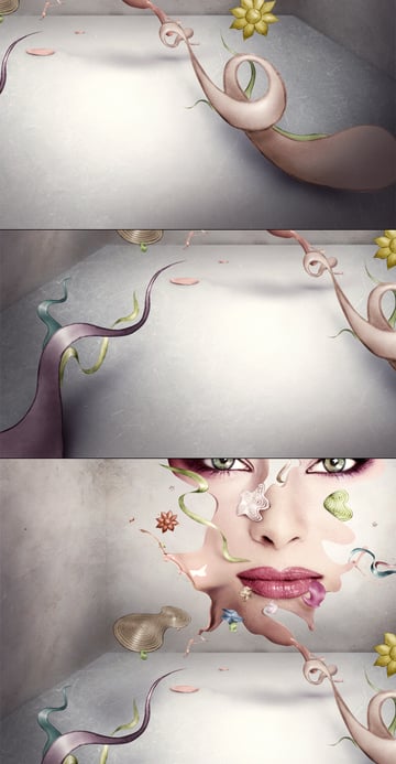 As this illustration is named "No Beauty" you can think of some elements connected with the beauty. I found two free pictures of blush, that are a little bit out of focus. But anyway, we will resize this blush down, so the blur won't be seen.