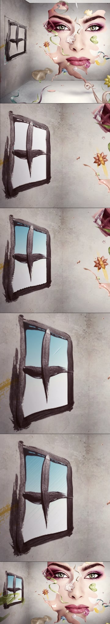 And finally you can cover the window with some more brushes as previously (fifth image below).