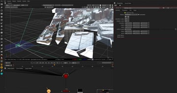 We need to get our footage into our 3D scene. To do this, select your read in snow footage and create a Card by hitting TAB, typing Card and then pressing Enter. Now attach your Card to your Scene node that we attached our buildings to.