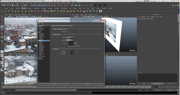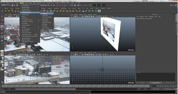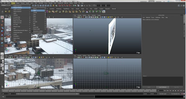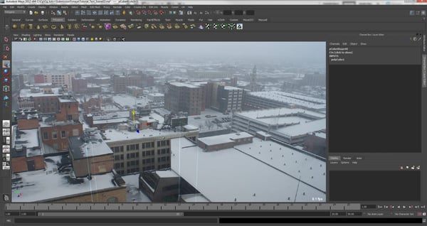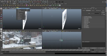 What we have just done is set this up in Maya, so that we know where our geometry needs to be in order for the buildings to be projected correctly without warping.