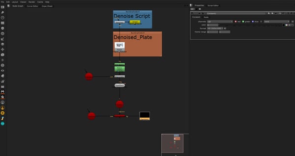 We need to degrain our image so that we can apply moving grain to the the final shot. This will give the look of it being shot as a video, rather than a still. To do this select your Read in image then click TAB, type Denoise and press Enter.