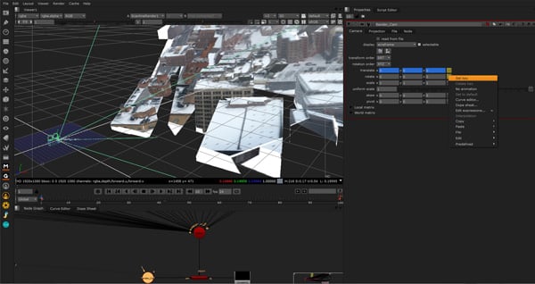 Now that we have our 3D scene setup, we need to create our camera move otherwise we’ll just have an image that is a duplicate of our photo. To do this we need to move our Camera plugged into the Scanline Render node.