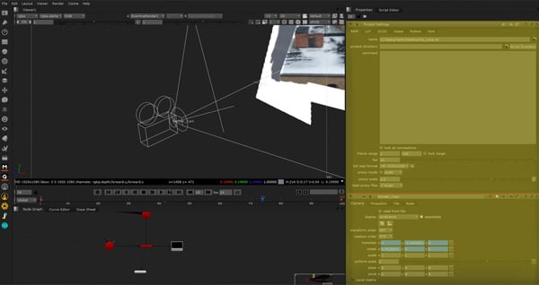We now need to import the camera that will project our image onto the geometry. So to create a camera hit TAB and type Camera, then hit Enter. Now that we have our Camera node, hit the Folder Icon and read in your .FBX, as well as selecting your Camera in the Node Name drop down. The same as we did for our geometry.