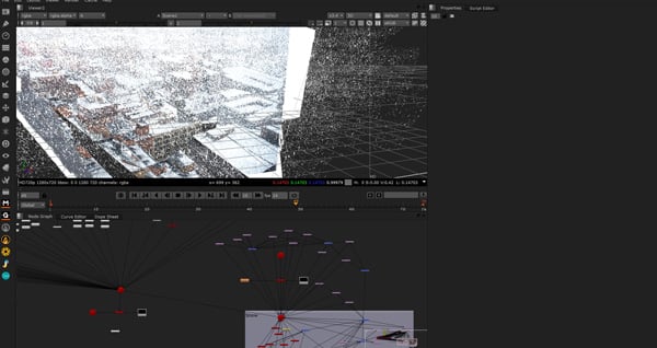 As we’re going to be creating more of these setups for all of our buildings, we need to create a Scene node which will place all of our setups into the same 3Dscene. So just select your ReadGeo node, hit TAB and type Scene to create a Scene node.